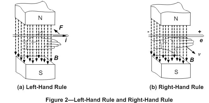 Current in a conductor generates a magnetic field. Placing a conductor in the vicinity of a separate magnetic can generate a force that reaches its apex when the conductor is at 90° to the external field. The left-hand rule can help the user determine the direction of the force, as shown in Figure 2(a).