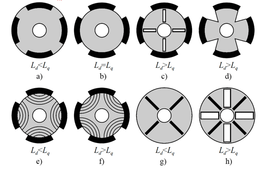 - Electric motors with salient pole rotor;