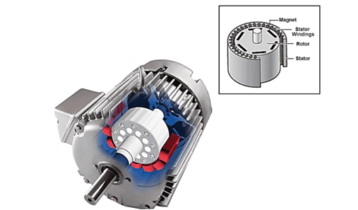 Instead of using winding for the rotor, permanent magnets are mounted to create a rotating magnetic field. As there is no supply of DC source, these types of motors are very simple and less cost. It contains a stator with 3 windings installed on it and a rotor with a permanent magnet mounted to create field poles. The 3-phase input ac supply is given to the stator to start working.