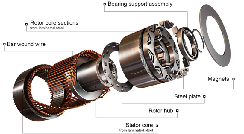 The rotor consists of permanent magnets. Materials with high coercive force are used as permanent magnets.