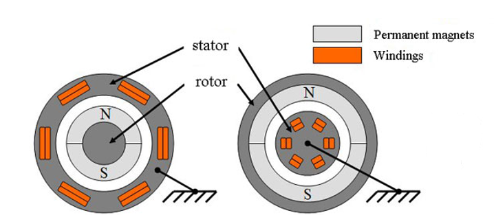 Typically, the rotor is located inside the stator of the electric motor, there are also structures with an external rotor - inside out electric motors