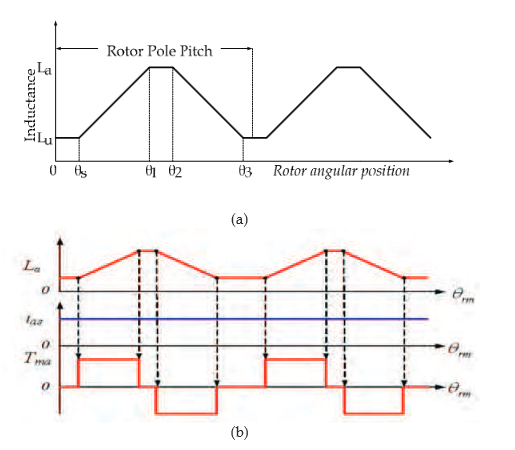The base speed ωb is the maximum speed at which maximum current and rated torque can be achieved at rated voltage. Below ωb, the torque can be maintained constant or control the iat-tcp phase current. At lower speed, the phase current rises almost instantly after the phase switches turn-on since the back EMF is small at this time. So it can be set at any desired level by means of regulators (hysteresis or PWM controller). Therefore, the adjustment of firing angle and phase current can reduce noise and improve torque ripple or efficiency.