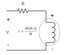 An equivalent circuit of the SRM is shown in Fig. 5. Where V is the applied phase voltage to phase, R is the phase resistance, and e is back-EMF. Ordinarily, e is the function of phase current and rotor position, and λ can be expressed as the product of inductance and winding current: